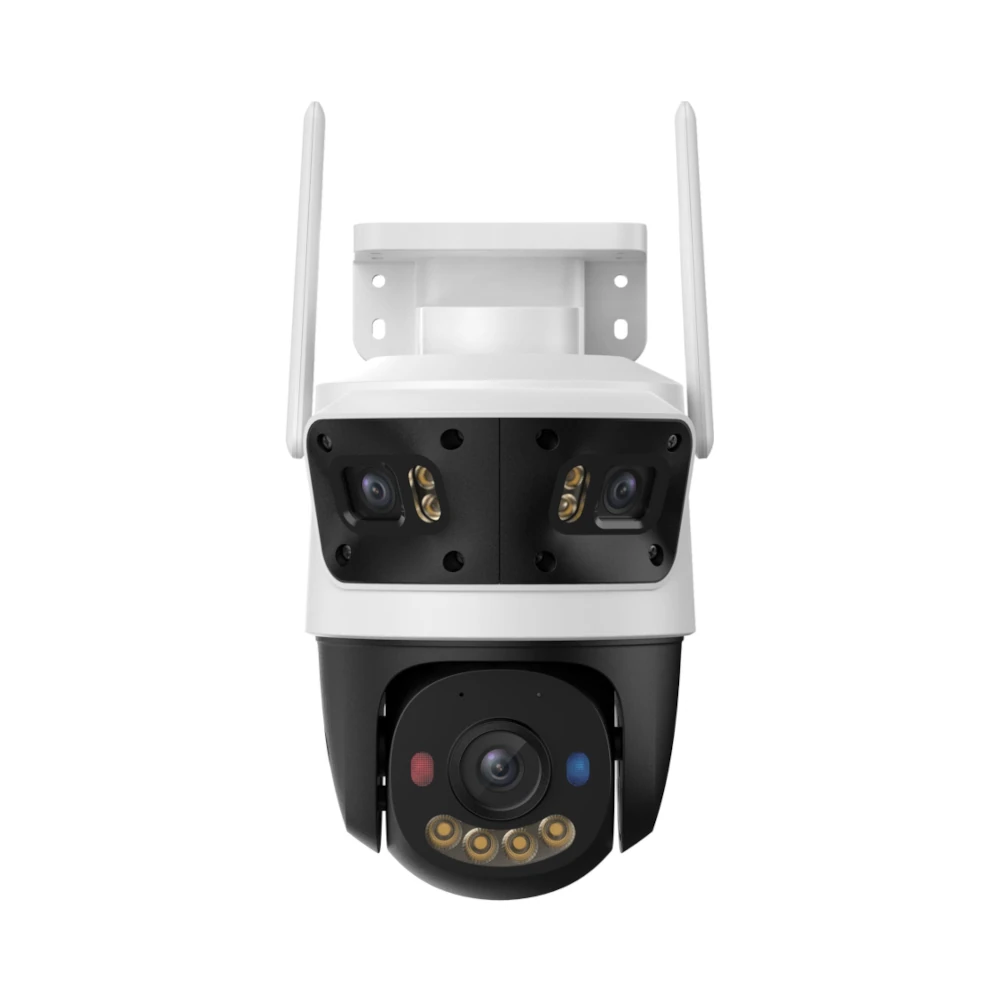 Kamera bezprzewodowa Imou Cruiser Triple 11MP (3MP+3MP+5MP) to zaawansowana, zewnętrzna kamera IP Wi-Fi z trzema obiektywami, zaprojektowana do kompleksowego monitoringu posesji. Dwa stałe obiektywy 3MP zapewniają szeroki podgląd otoczenia, a obrotowy obiektyw 5MP umożliwia precyzyjne śledzenie wybranych obszarów. To idealne rozwiązanie do ochrony domu, podjazdu, podwórka czy firmy, zastępujące kilka tradycyjnych kamer jednym urządzeniem.