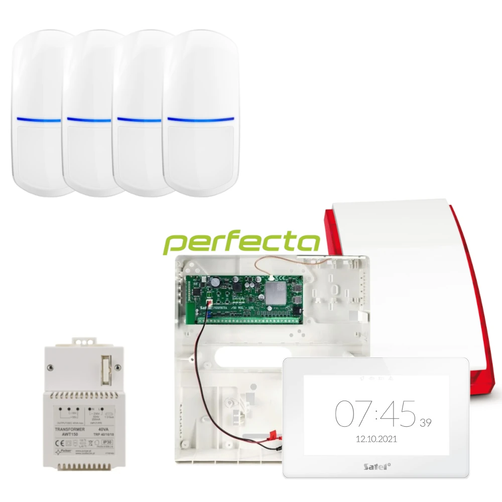 Ten zestaw alarmowy oparty o centralę PERFECTA 64 M od SATEL to gotowe rozwiązanie do ochrony domu, biura lub lokalu usługowego, w którym chcesz mieć wygodną obsługę i możliwość rozbudowy instalacji. Zestaw wykorzystuje nowoczesny, dotykowy manipulator INT-TSH2R-W 7”, który ułatwia codzienne sterowanie systemem (czytelny interfejs, szybkie uzbrajanie/rozbrajanie).